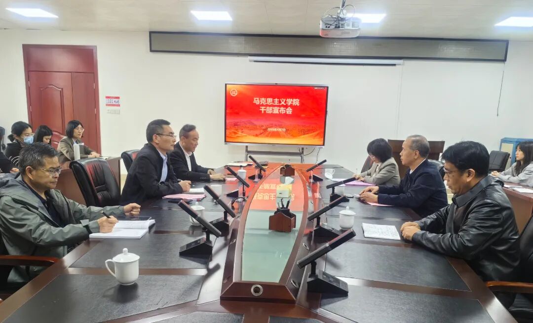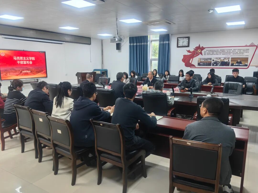 2026年4月7日,马克思主义学院干部宣布会在学院301会议室召开,校党委王向阳副书记出席,校党委组织部副部长涂秀珍主持会议。